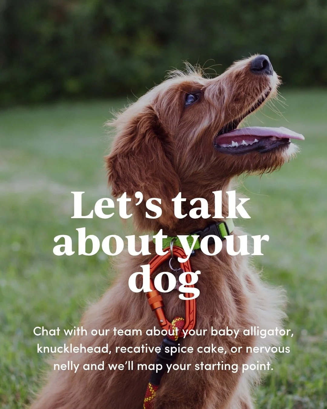 training programsDog training that actually works in real life. Baby alligator? Start with a puppy socialization class. Knucklehead? FoundationssBeheaviorally spicy? Sidekick sesh Not sure where to start? Let’s Meet Your Dog